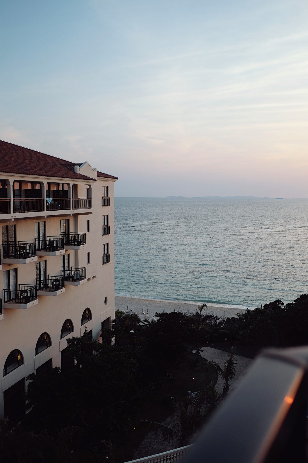 バルコニーから夕日を見ると